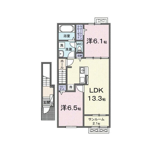 2LDK(洋6.1・洋6.5・LDK13.3) |